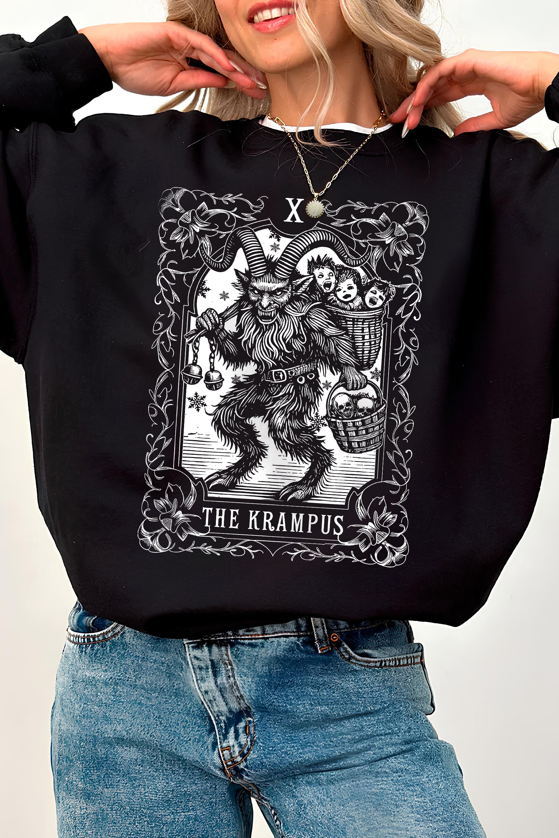 The Krampus Tarot Card Goth Christmas Fleece Sweatshirt For Women