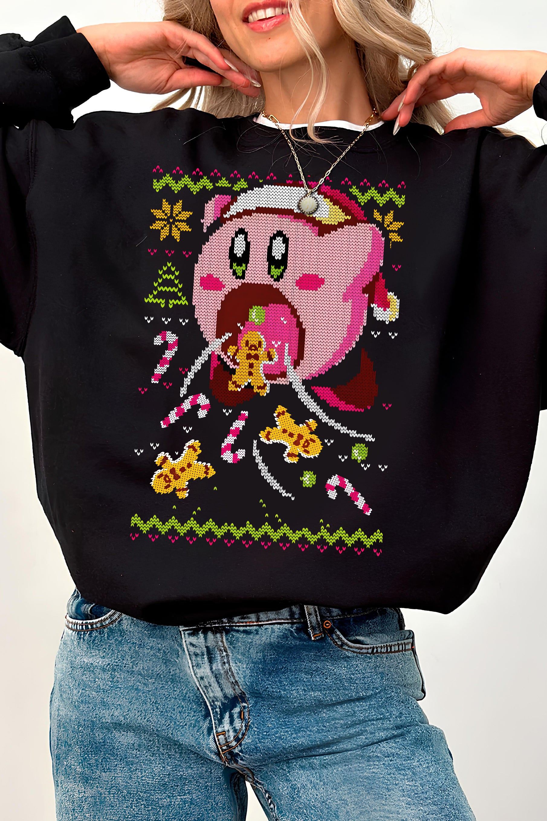 Kirby Ugly Christmas Fleece Sweatshirt For Women