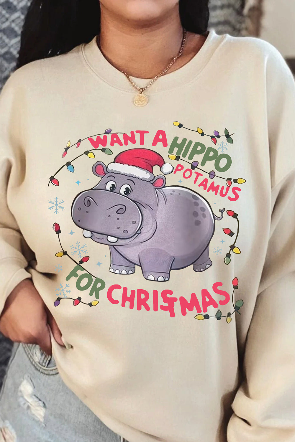 The Hippopotamus Christmas Fleece Sweatshirt For Women