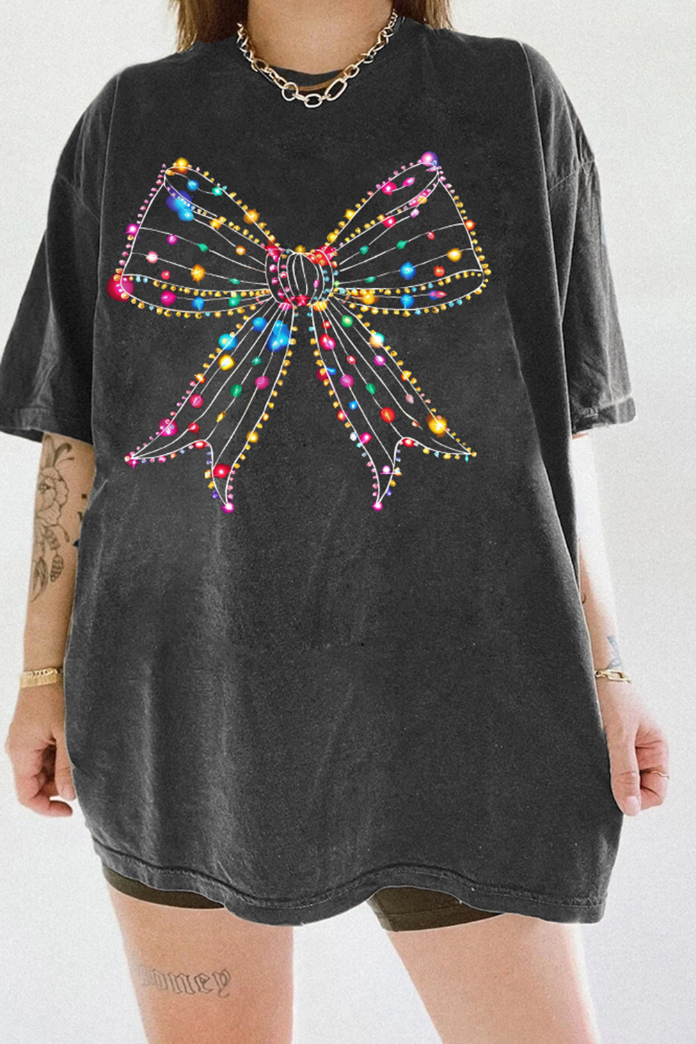 Christmas Light Bow Tee For Women