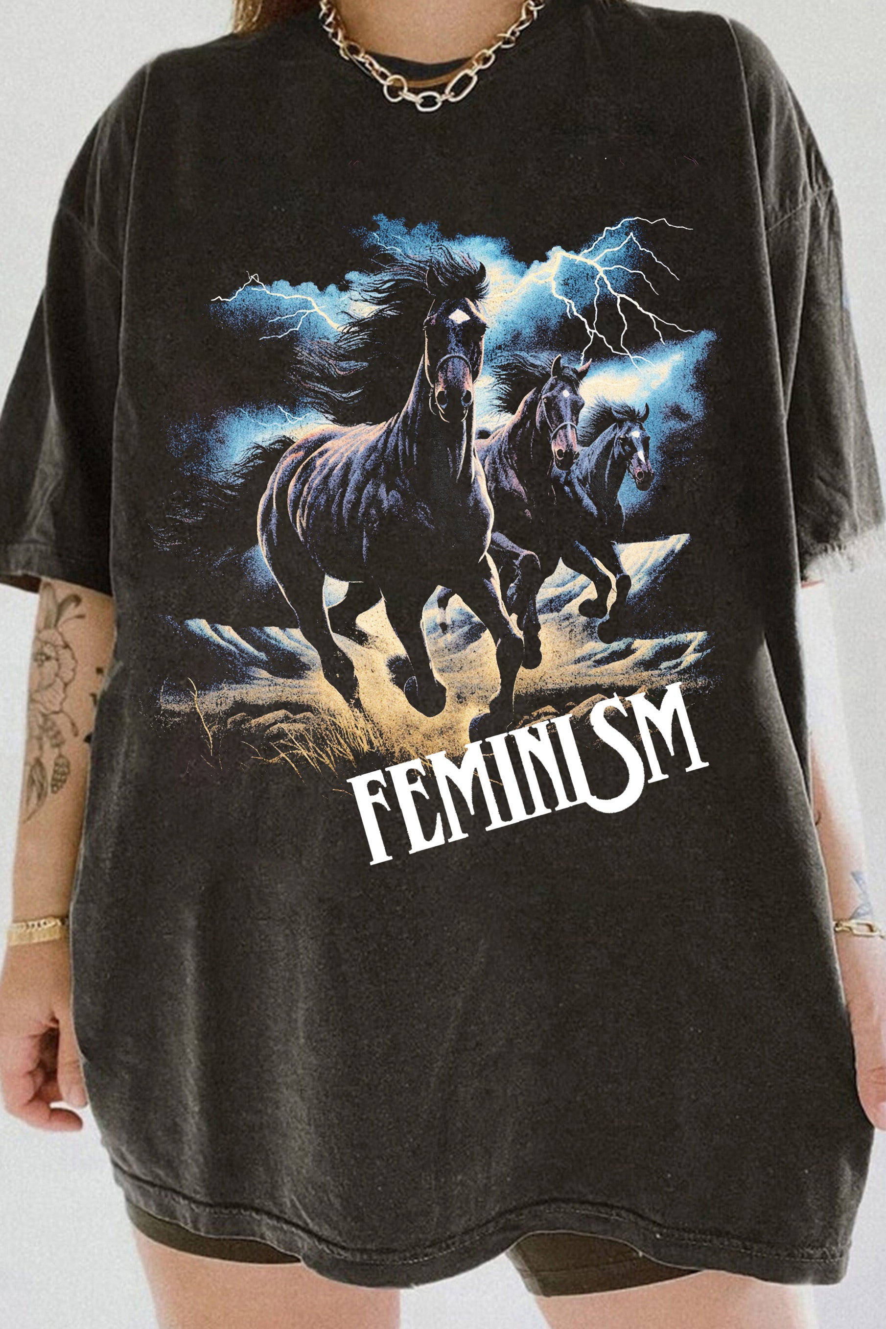 Horses Running In Thunderstorm FEMINIST Tee For Women
