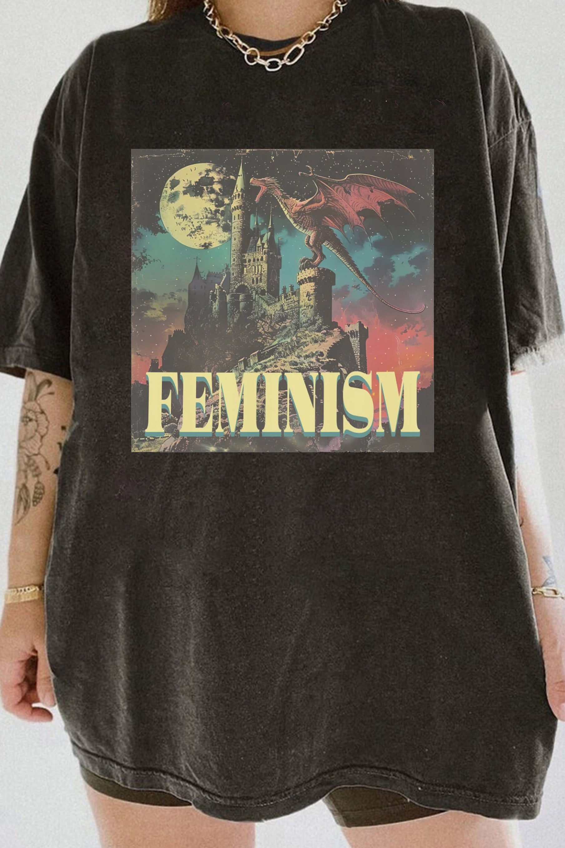 Vintage Feminism Dragon Fantasy Tee For Women