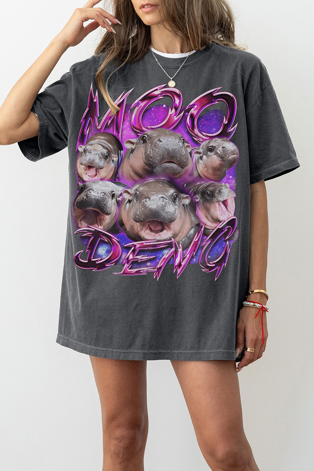 Moo Deng Vintage 90s Hippo Meme Tee For Women