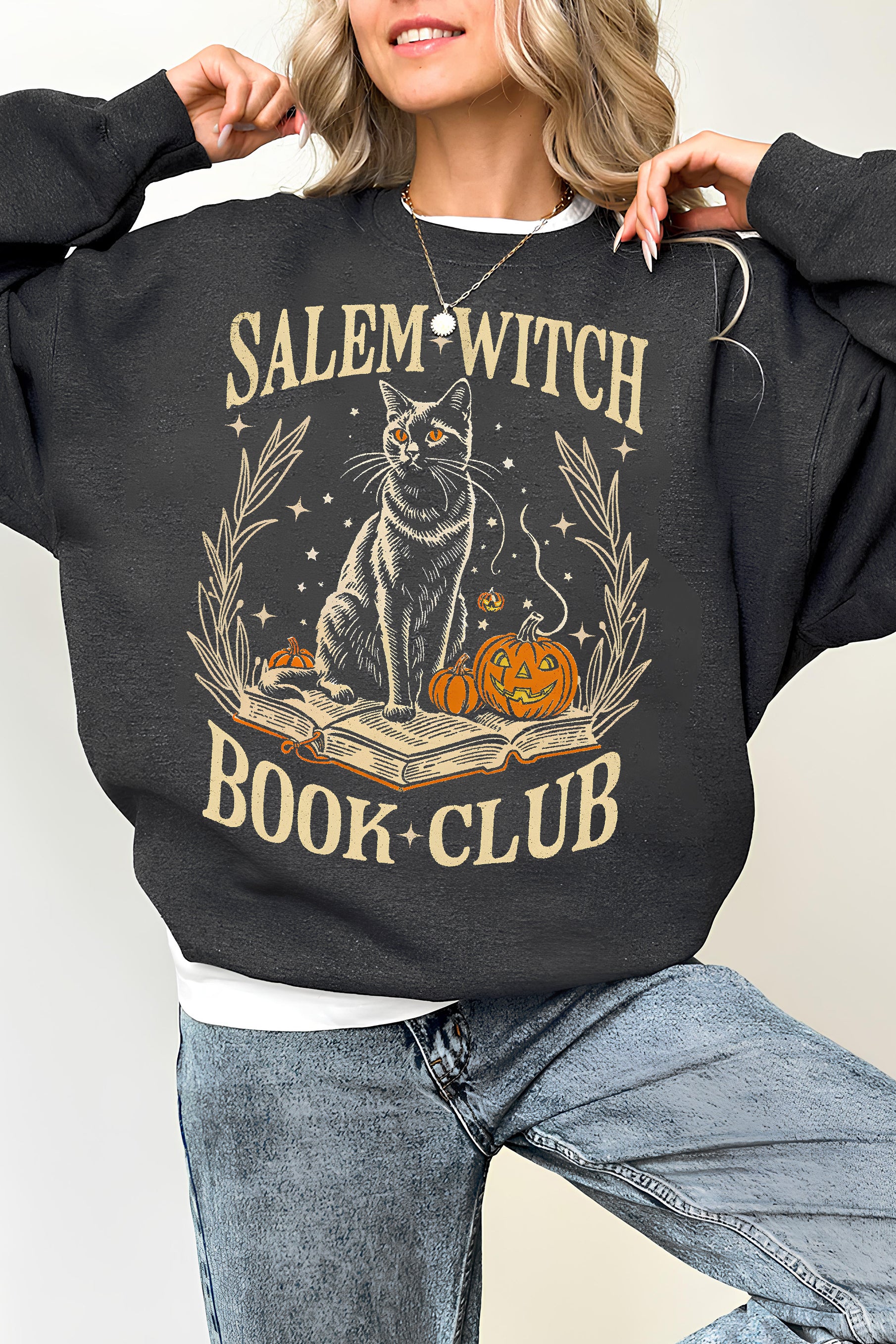 Salem Witch Book Club Black Cat Sweatshirt For Women