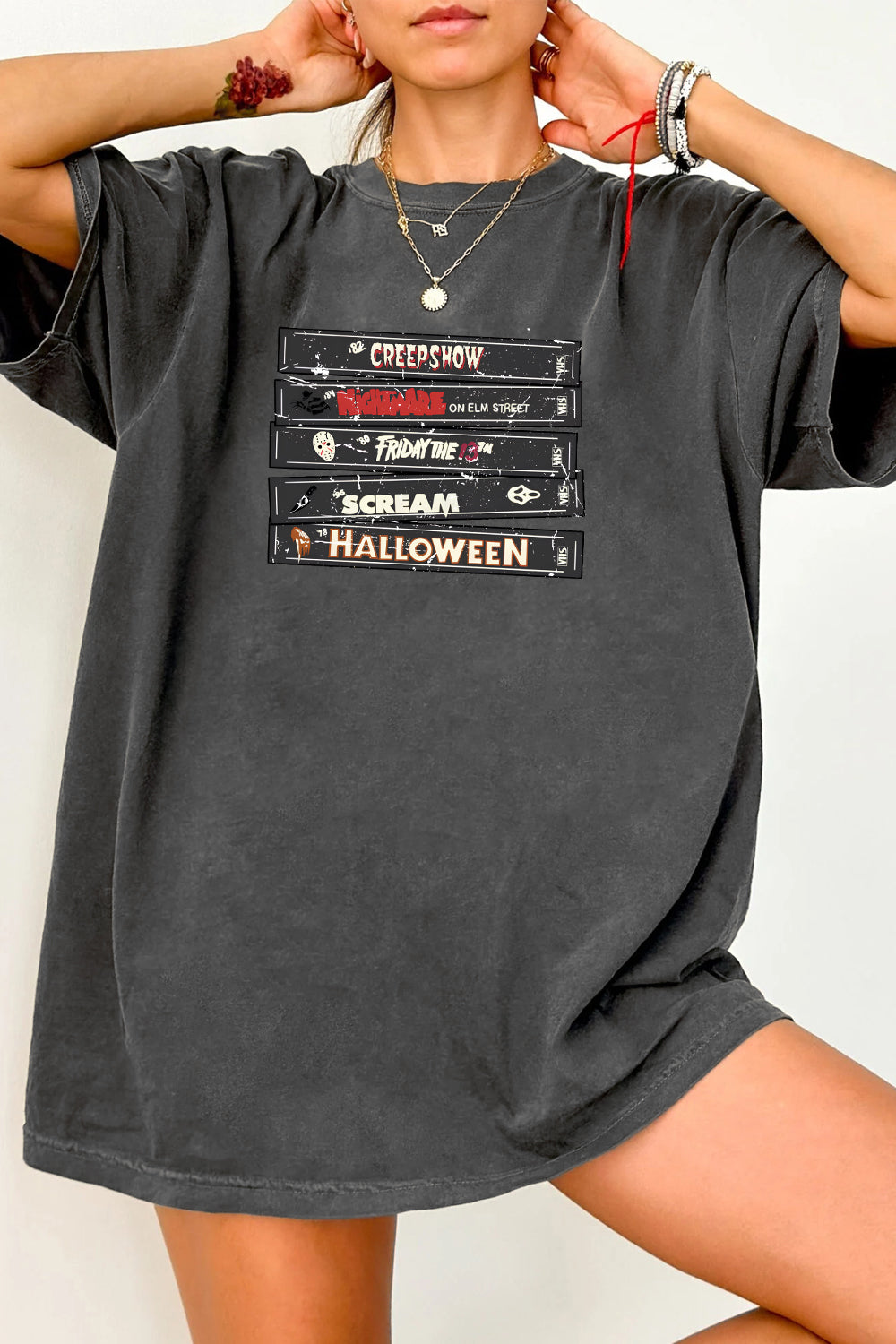 90s Halloween VHS Tape Stack Tee For Women