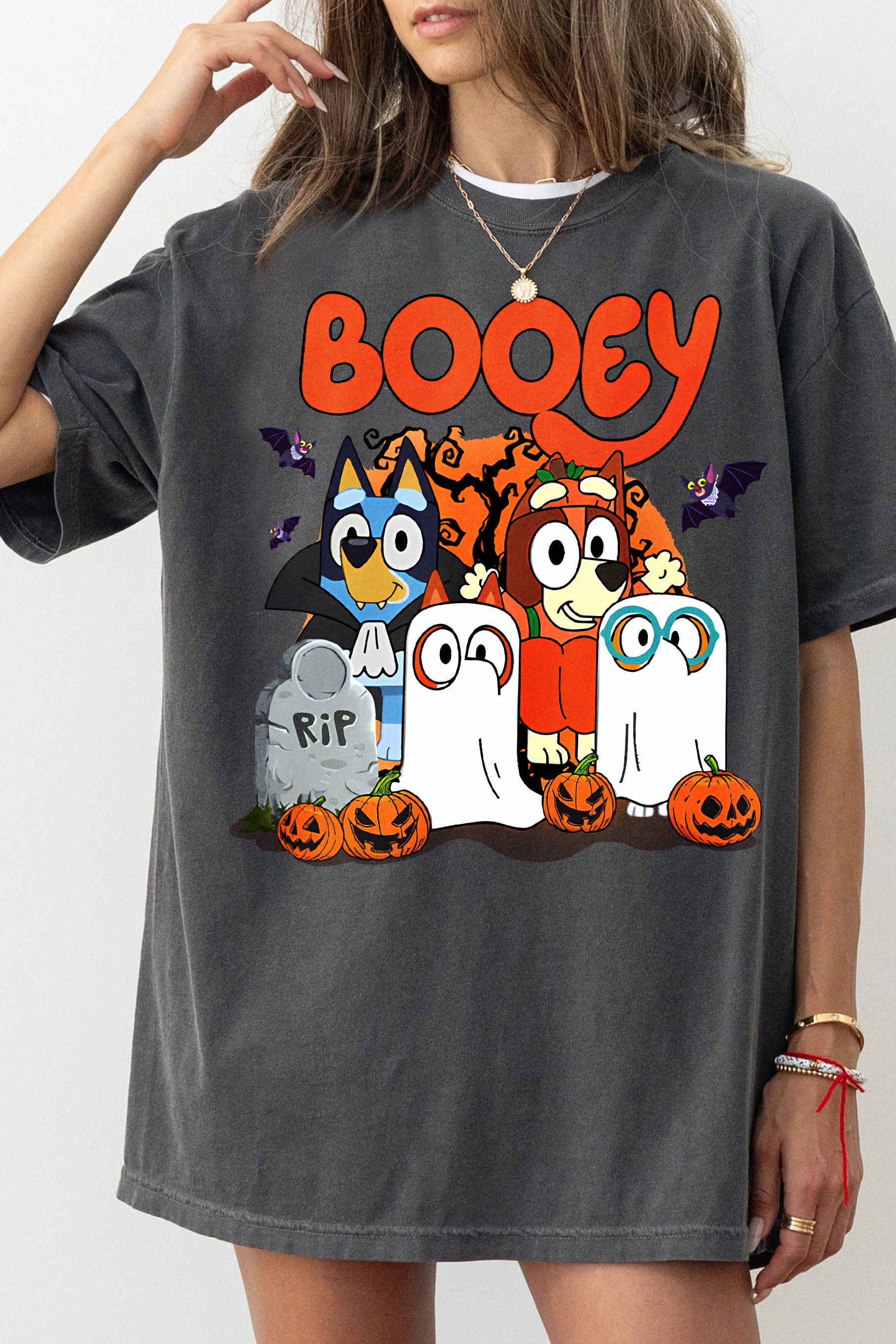 Bluey Booey Family Trick Or Treat Cute Halloween Tee For Women
