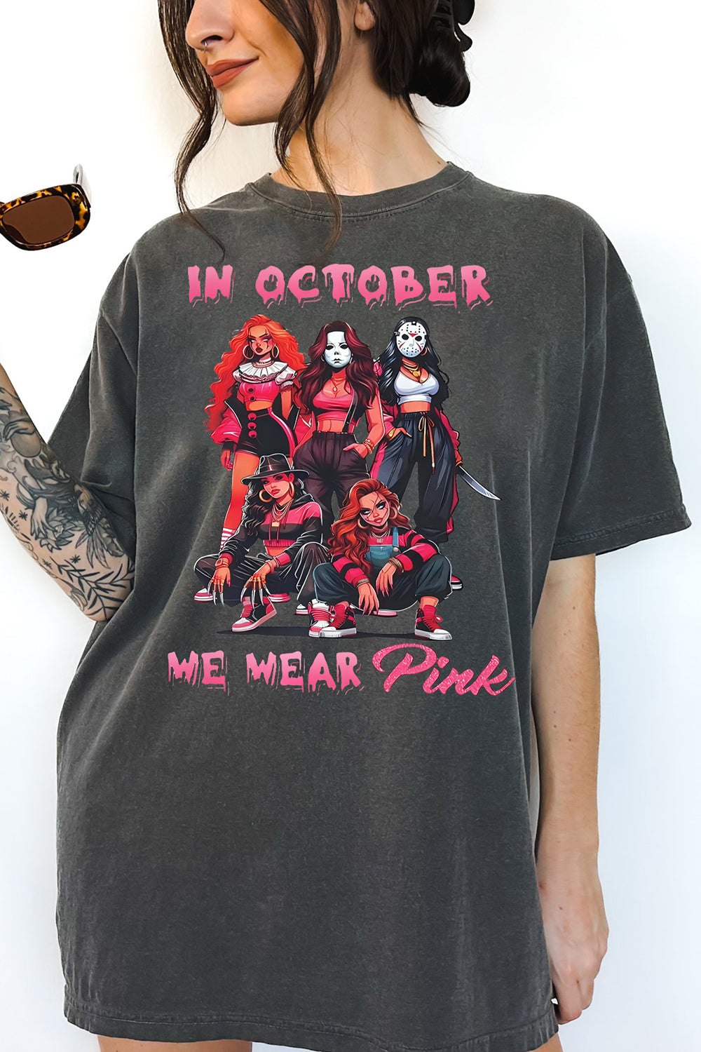 In October We Wear Pink Halloween Michael Myers Tee For Women