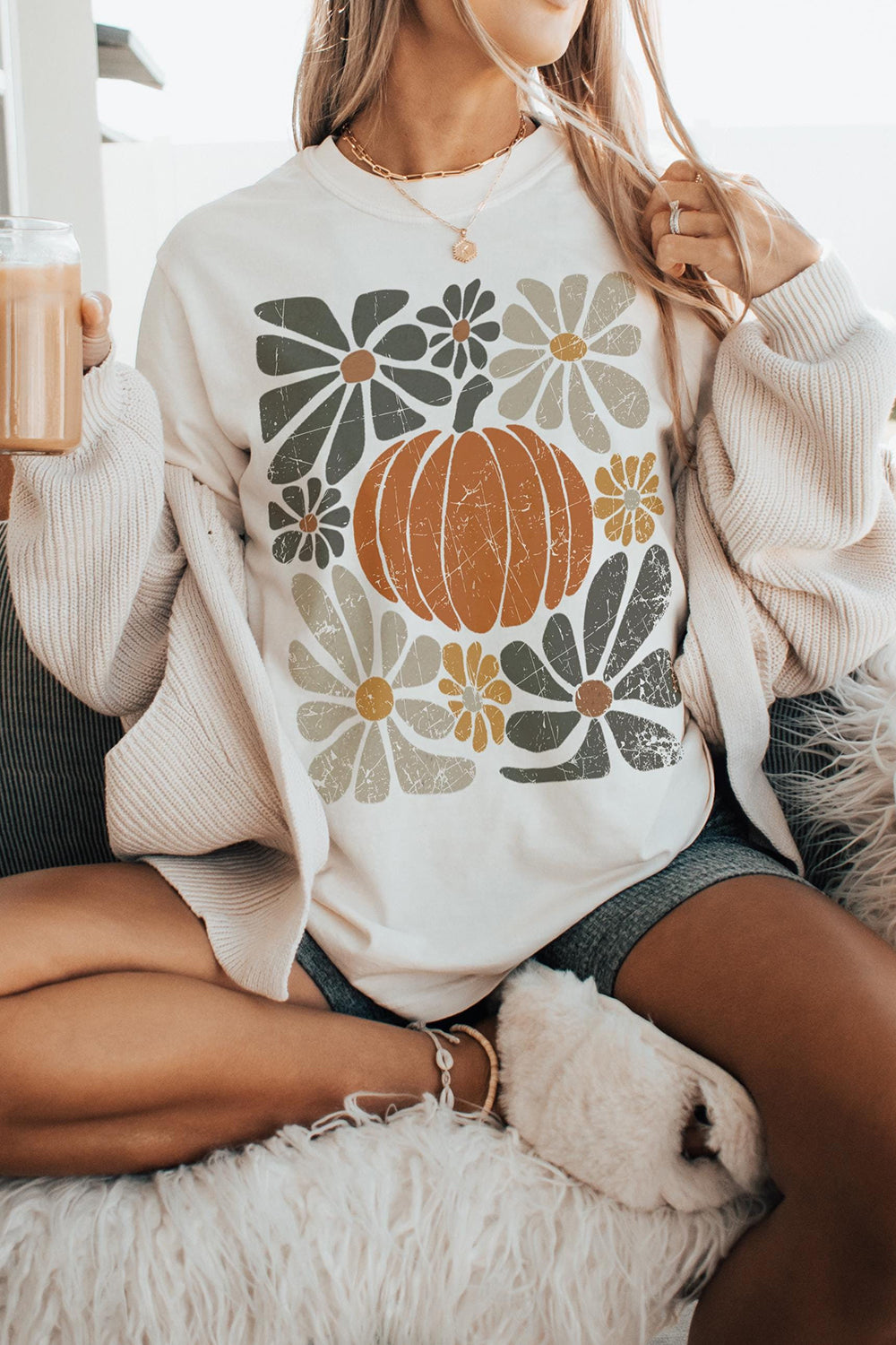 Pumpkin Boho Floral Fall Pumpkin Season Tee For Women