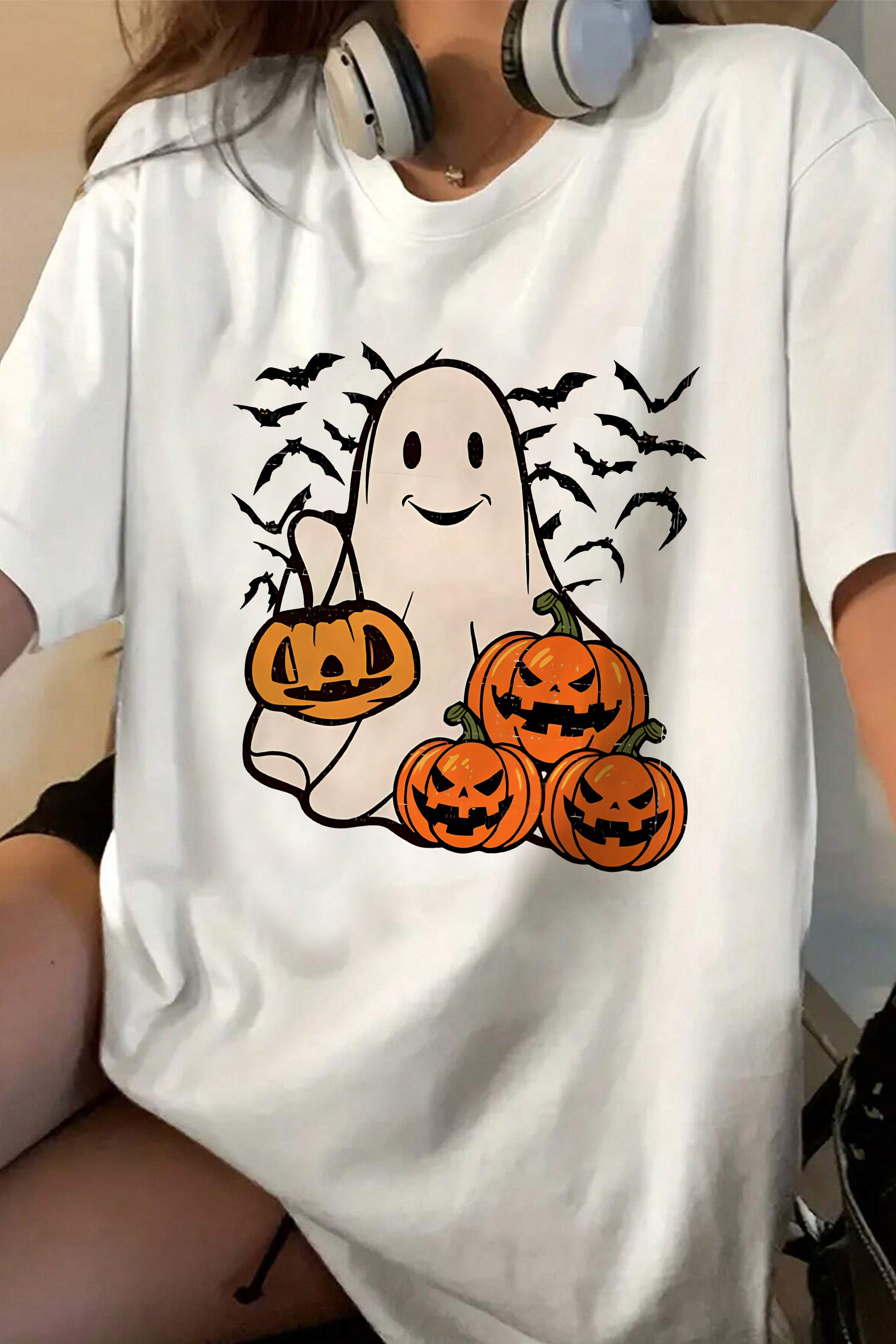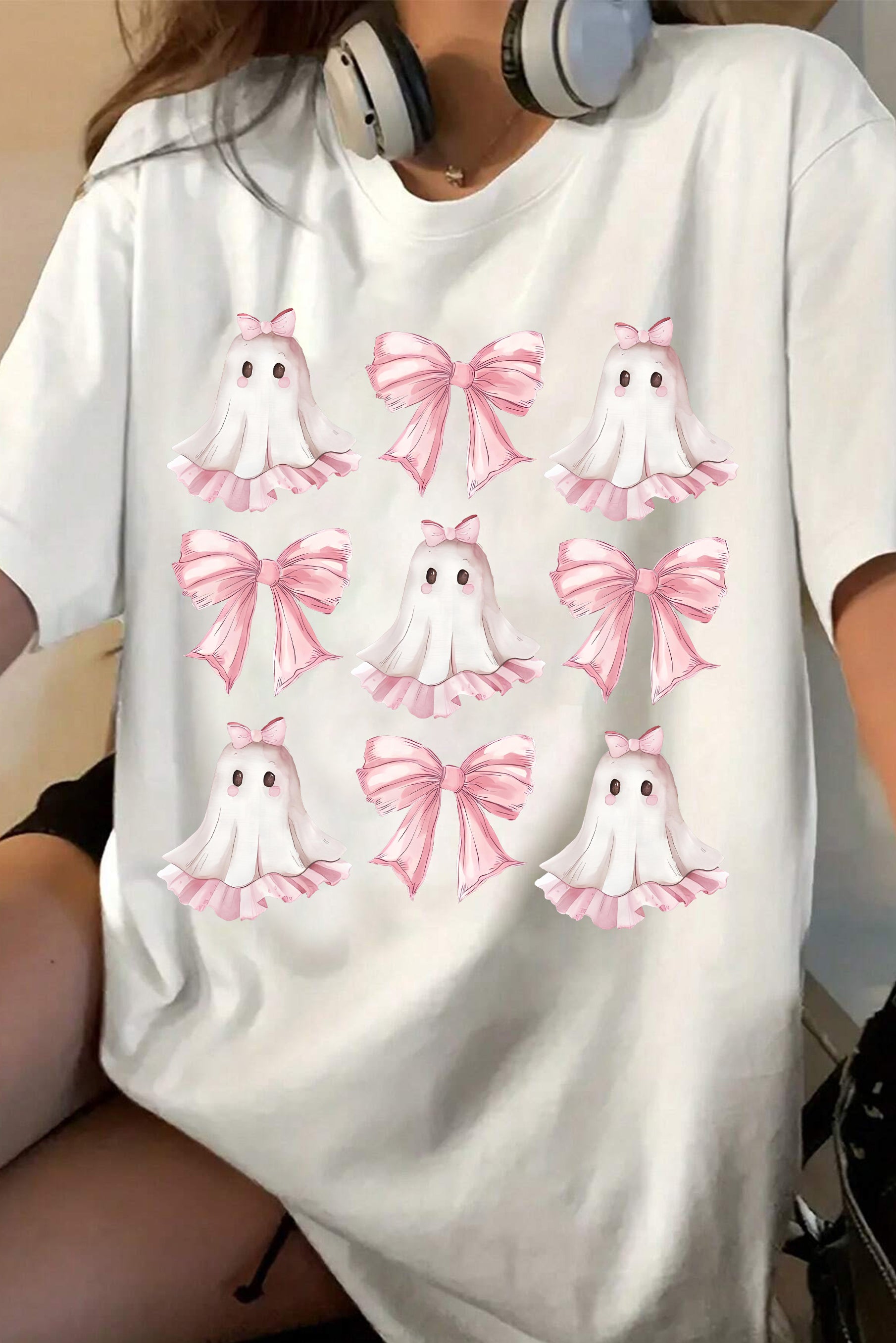 Coquette Halloween Pink Bow Ghost Tee For Women