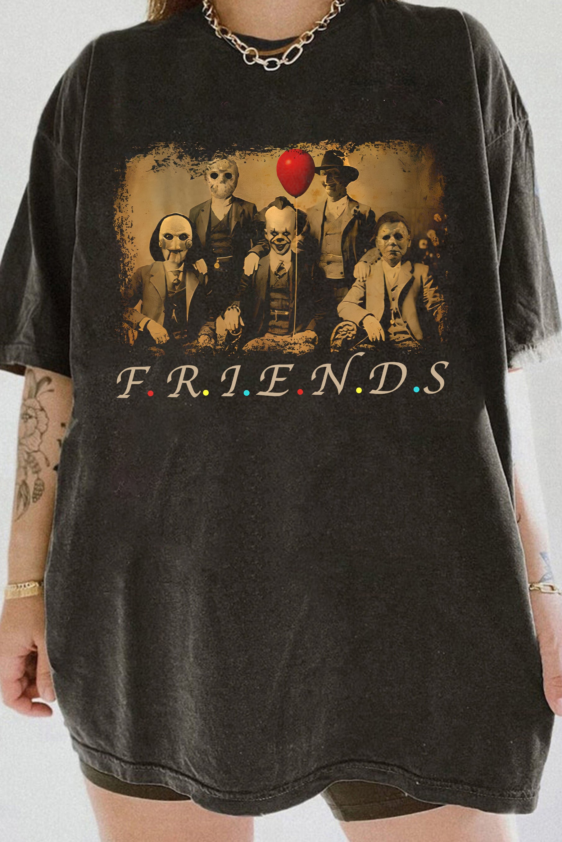 Friends Horror Five Characters Squad Funny Halloween Movie Tee For Women
