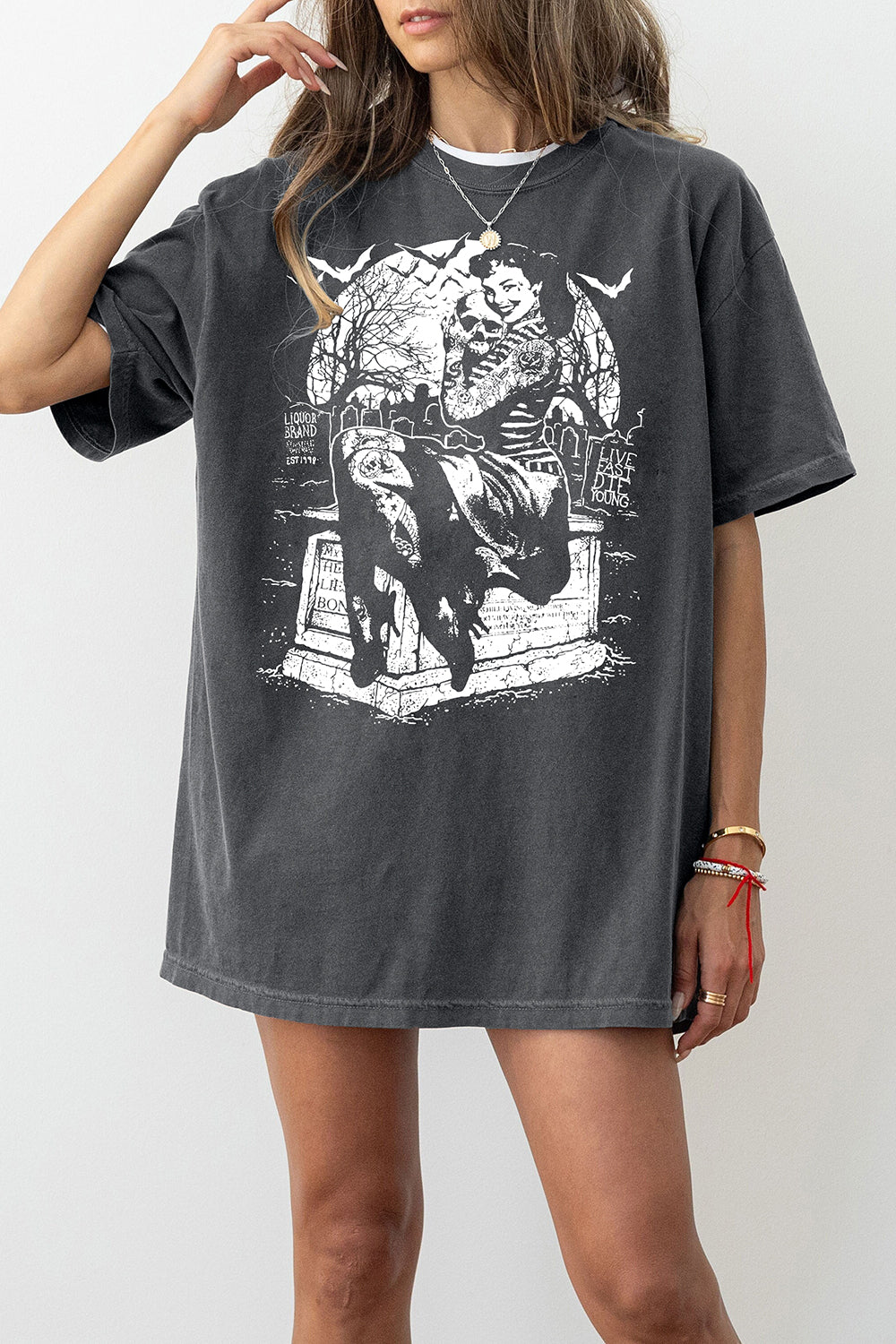Tattooed Girl Graveyard Skull Punk Tee For Women